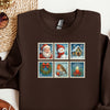 Christmas Postage Stamps Sweatshirt, Retro Holiday Pullover, Festive Holiday Sweatshirt