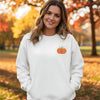 Stay cozy this fall with our embroidered pumpkin sweatshirt. Featuring a simple yet charming stitched pumpkin pocket design, this soft and cozy sweatshirt is perfect for autumn days, Halloween vibes, and pumpkin patch outings. A must-have for seasonal style lovers.