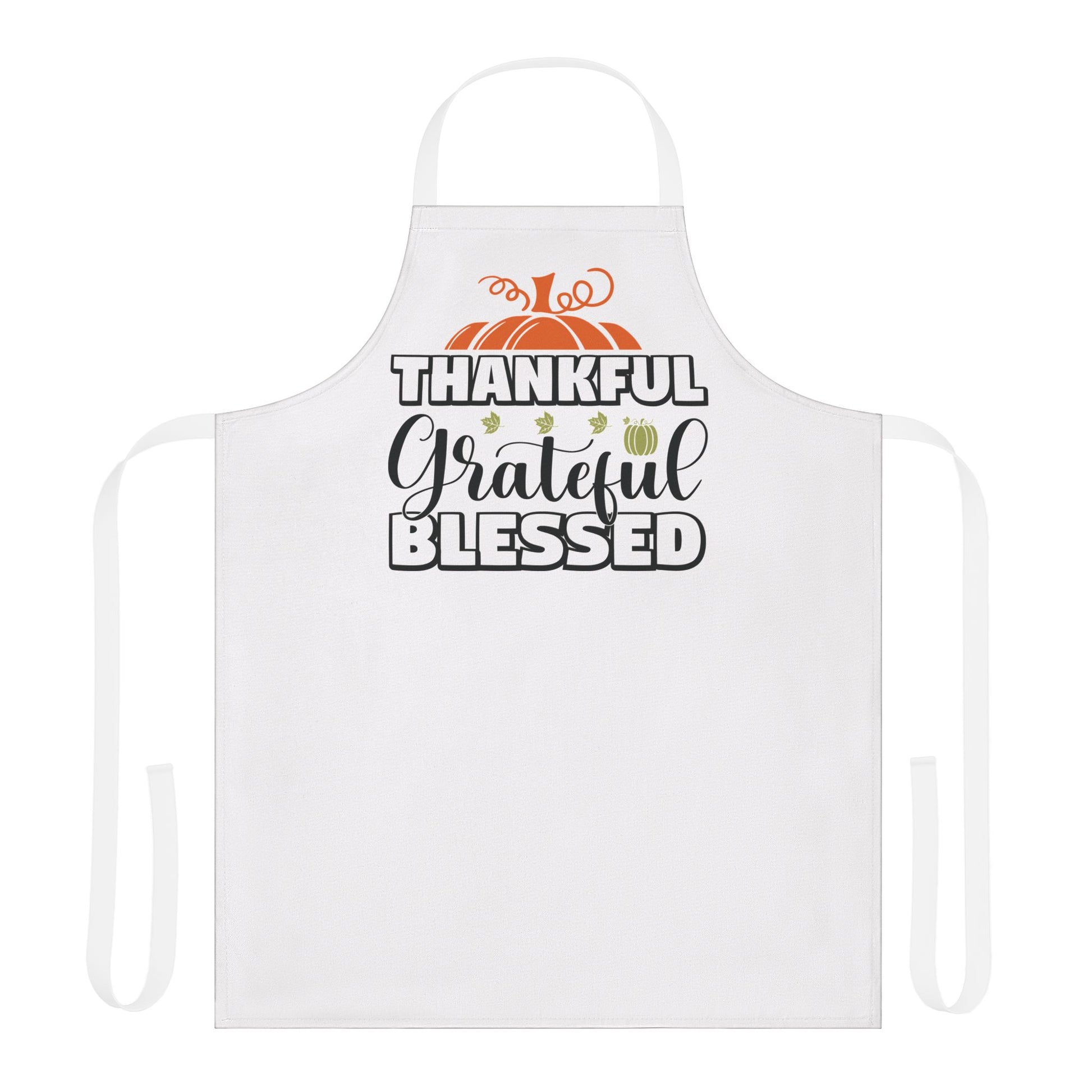 Cook with intention in this Thankful • Grateful • Blessed apron featuring a warm brown script pattern. Perfect for fall baking, Thanksgiving hosting, and everyday kitchen use. A heartfelt, cozy design made-to-order for comfort and style.
