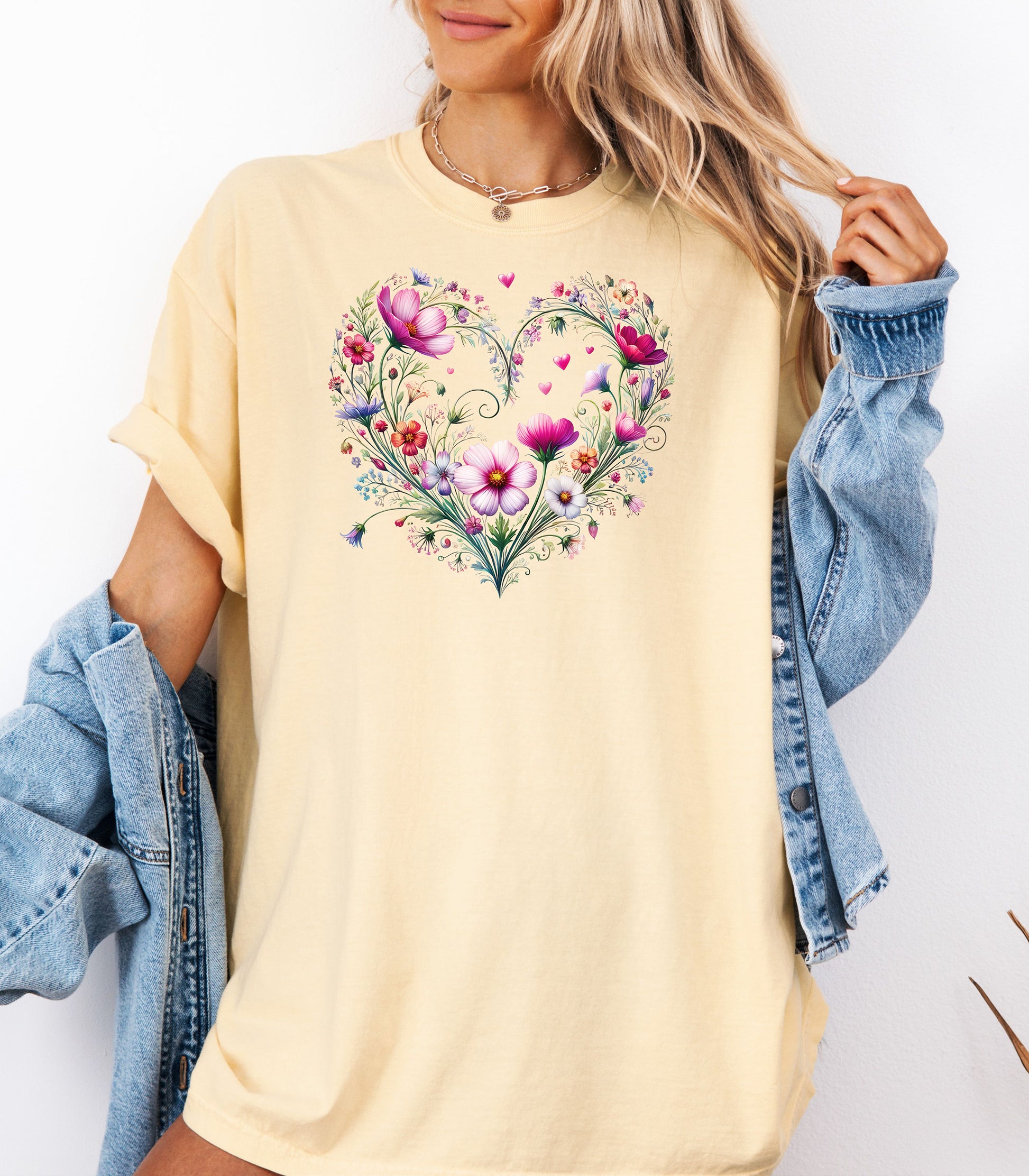 Wrap yourself in a garden of color—let this wildflower heart tee brighten your day!